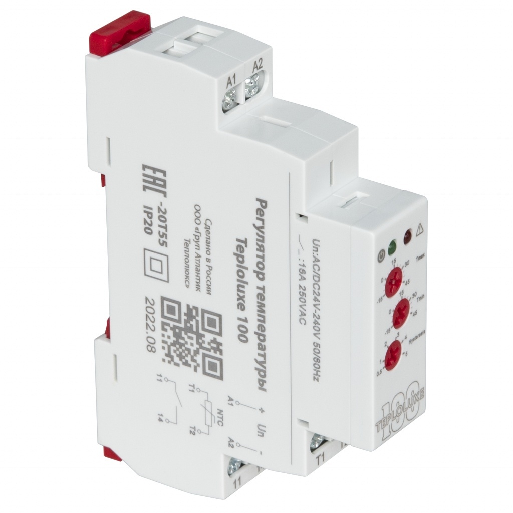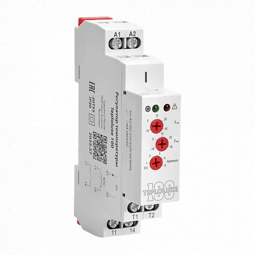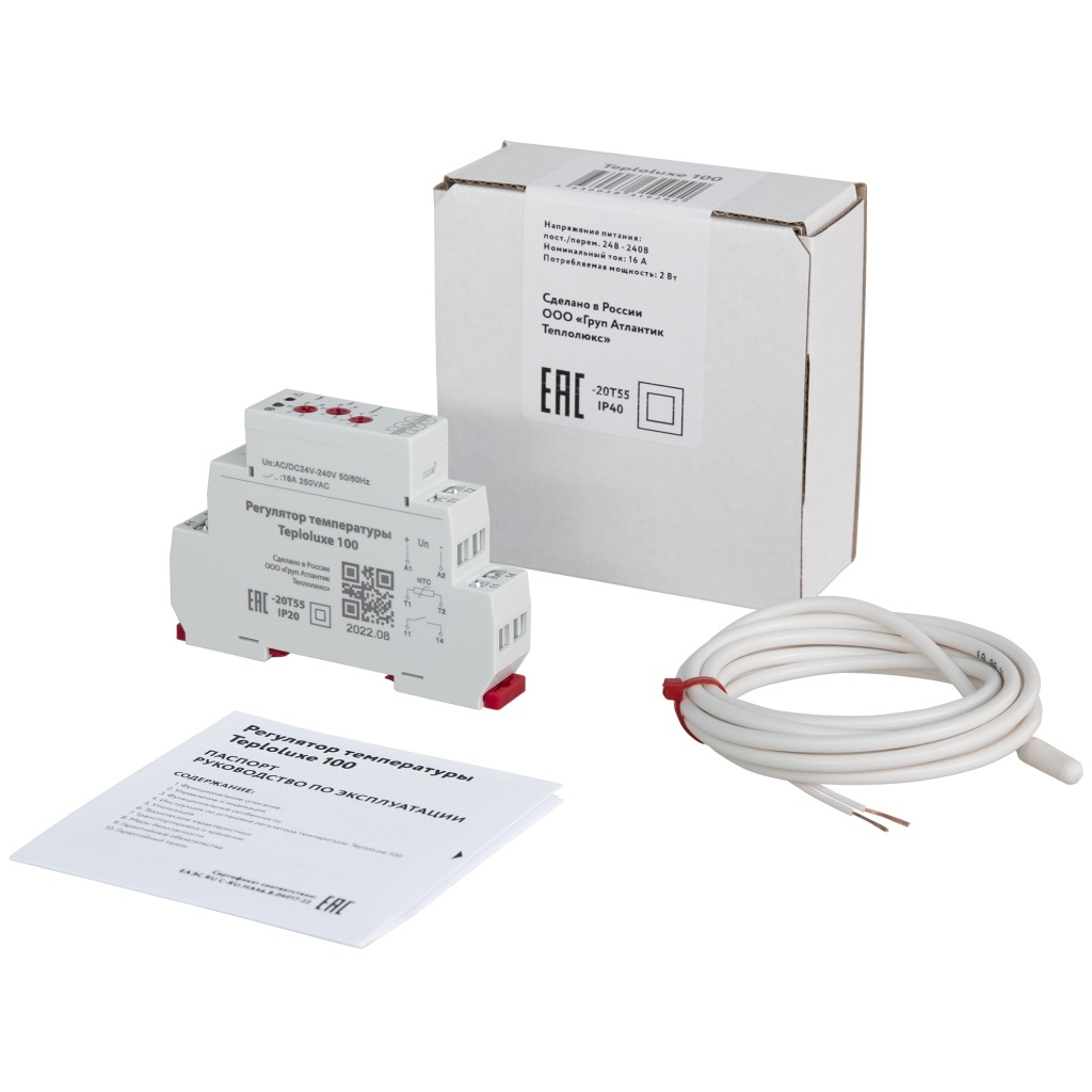 Регулятор температуры Teploluxe 100 постоянно контролирует температуру наружного воздуха при помощи внешнего датчика температуры. Устройство коммутирует встроенное реле (16 А, 240 В) при попадании текущего значения температуры в установленный температурный диапазон. При выходе за пределы регулирования температуры прибор блокирует цепь включения обогрева. При помощи регулировочных колец, расположенных на лицевой панели прибора, пользователем могут быть установлены границы температурного диапазона в интервале от -15°C до +45°C