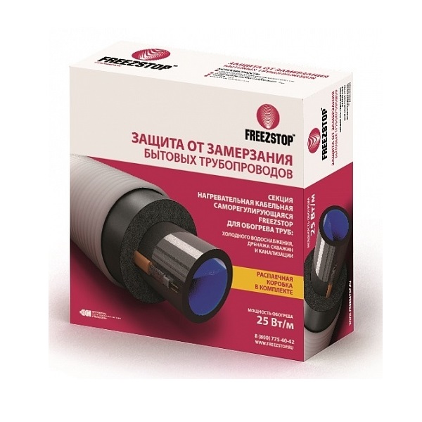 Секция нагревательная кабельная Freezstop-25-2 предотвращает замерзания бытовых трубопроводов (водопроводных или канализационных):