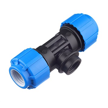 Тройник компрессионный с внутренней трубной резьбой является универсальной деталью полиэтиленового трубопровода имеющий внутреннюю резьбу с шагом, соответствующим стандартным размерам стальных труб, благодаря чему, этот тройник можно использовать для перехода с ПНД трубы на стальную и наоборот.