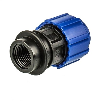 Муфта с внутренней трубной резьбой предназначена для возможности легкого перехода со стального трубопровода на трубопровод из ПНД труб, так как имеет резьбу соответствующую размерам и стандартам стальных трубных резьб. Кроме этого муфта с внутренней резьбой может учавствовать в строительстве различных комбинаций отводов и разветвлений с применением других компрессионных ПНД фитингов.