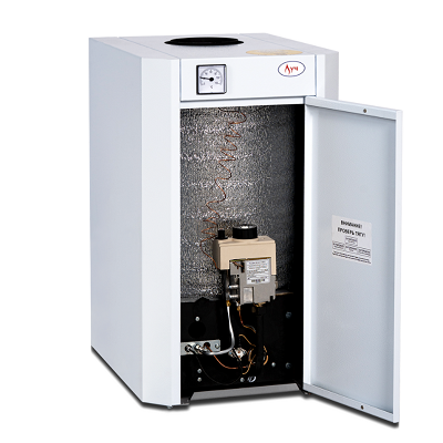 Малогабаритный бытовой котел напольный КСГ-12-11 "Луч" предназначен для отопления помещений до 120 кв м. Оборудование может работать в так называемой замкнутой системе отопления на природном и сжиженном газе.