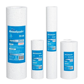 Картридж АКВАБРАЙТ ПП-10М-10ББ изготовлен из спеченного полипропилена с пищевым допуском.