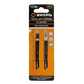 Пилка для лобзика Т119В по дереву,быстрый рез 76х50мм (2 шт) 73/10/5/8