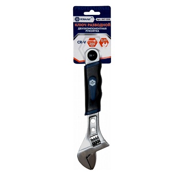 КОБАЛЬТ Ключ разводной 24х200 мм с двухкомпонентной ручкой, Cr-V, блистер
