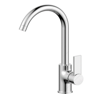 Стильный и лаконичный однорычажный смеситель для кухни с высоким поворотным изливом.